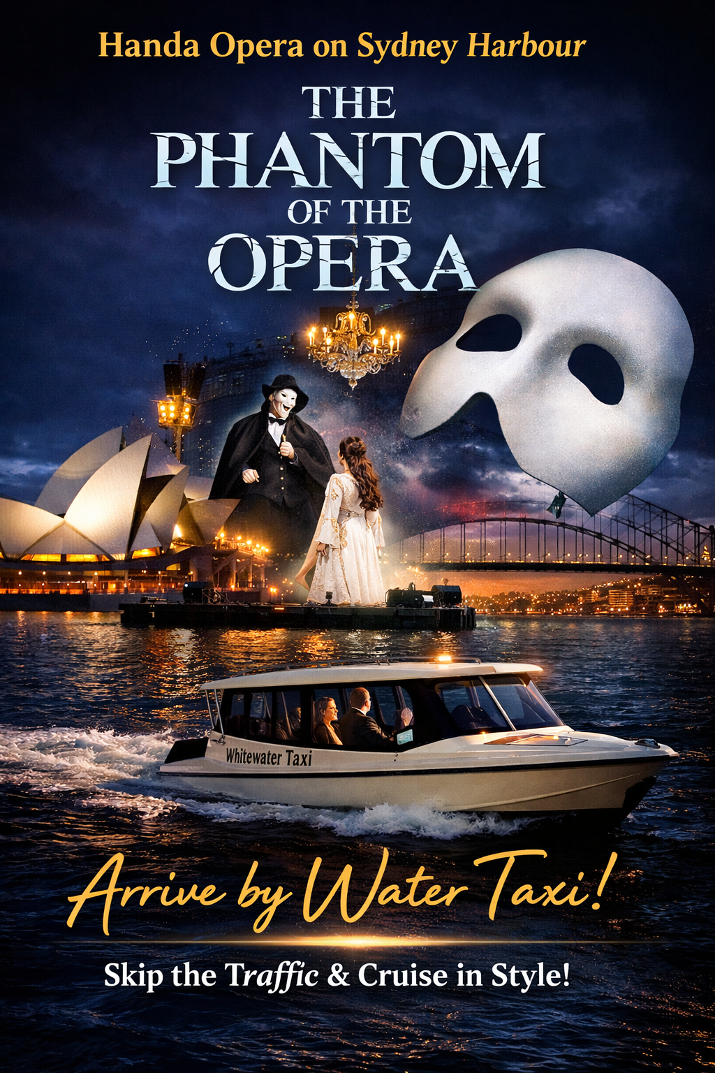 The Phantom may live beneath the Opera House… but the best way to arrive above it is by water.